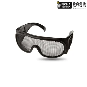 Montura deportiva de nylon flexible con cordón de retención, diseño envolvente para visión panorámica lateral y recubrimiento antiempañante; ideales para protección contra impactos de partículas.