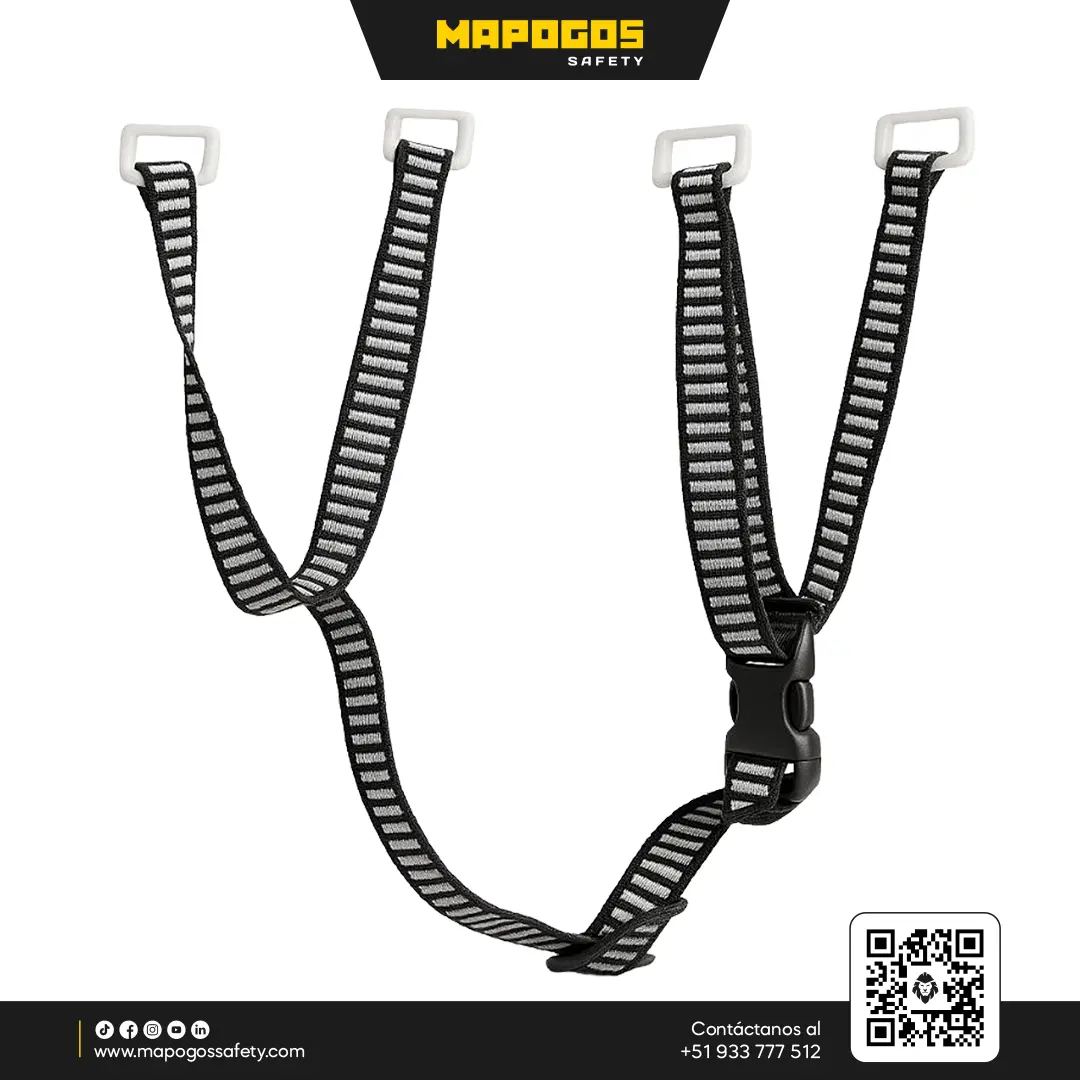 El barbuquejo V-Gard de 4 puntos – ángulo 1 está diseñado para mantener el casco firmemente sujeto a la cabeza, incluso en condiciones de trabajo en altura, movimientos bruscos o entornos con riesgo de caída de objetos. Compatible con cascos V-Gard de MSA, este accesorio mejora significativamente la seguridad y estabilidad del equipo.
