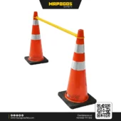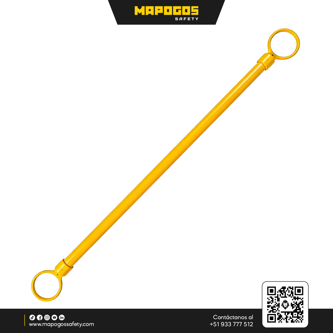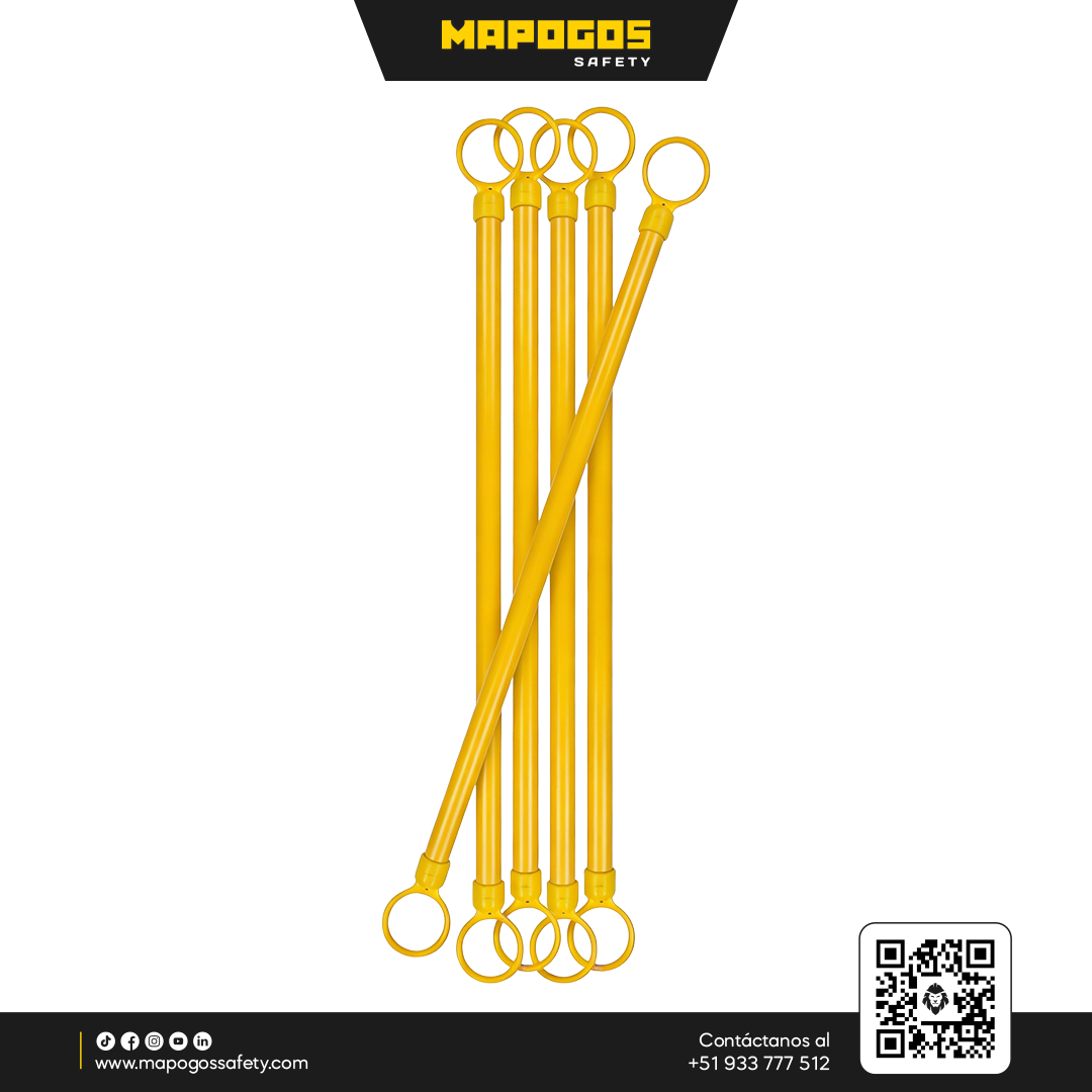 Barra retráctil realizada en PVC de color amarillo, diseñada para crear barreras temporales entre conos, postes o delineadores en entornos viales, industriales o de control de tránsito.