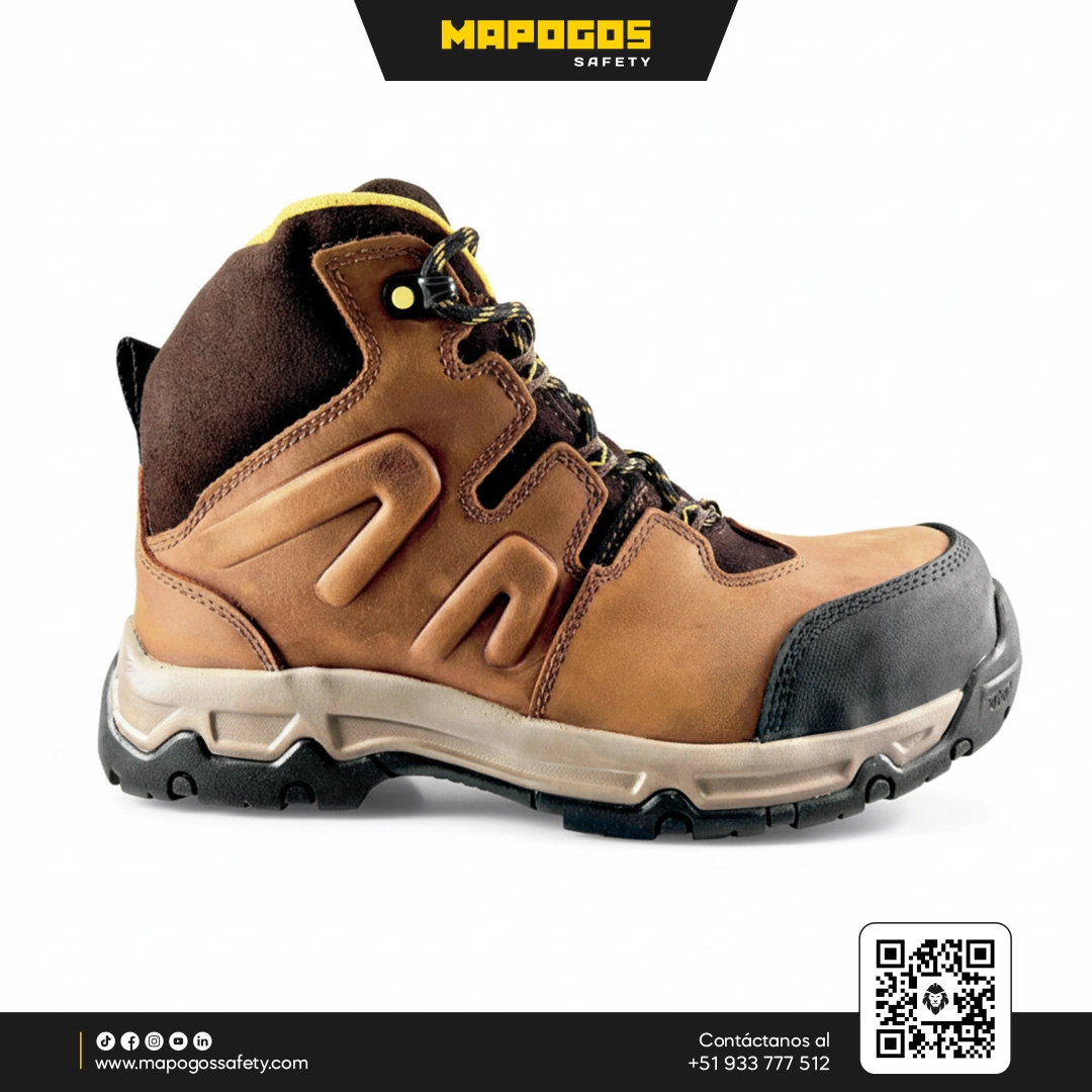 Cumple con las normas NTP‑ISO 20345:2017 y ASTM F2413 para calzado de seguridad con puntera, propiedades dieléctricas, antiperforación y antideslizamiento.