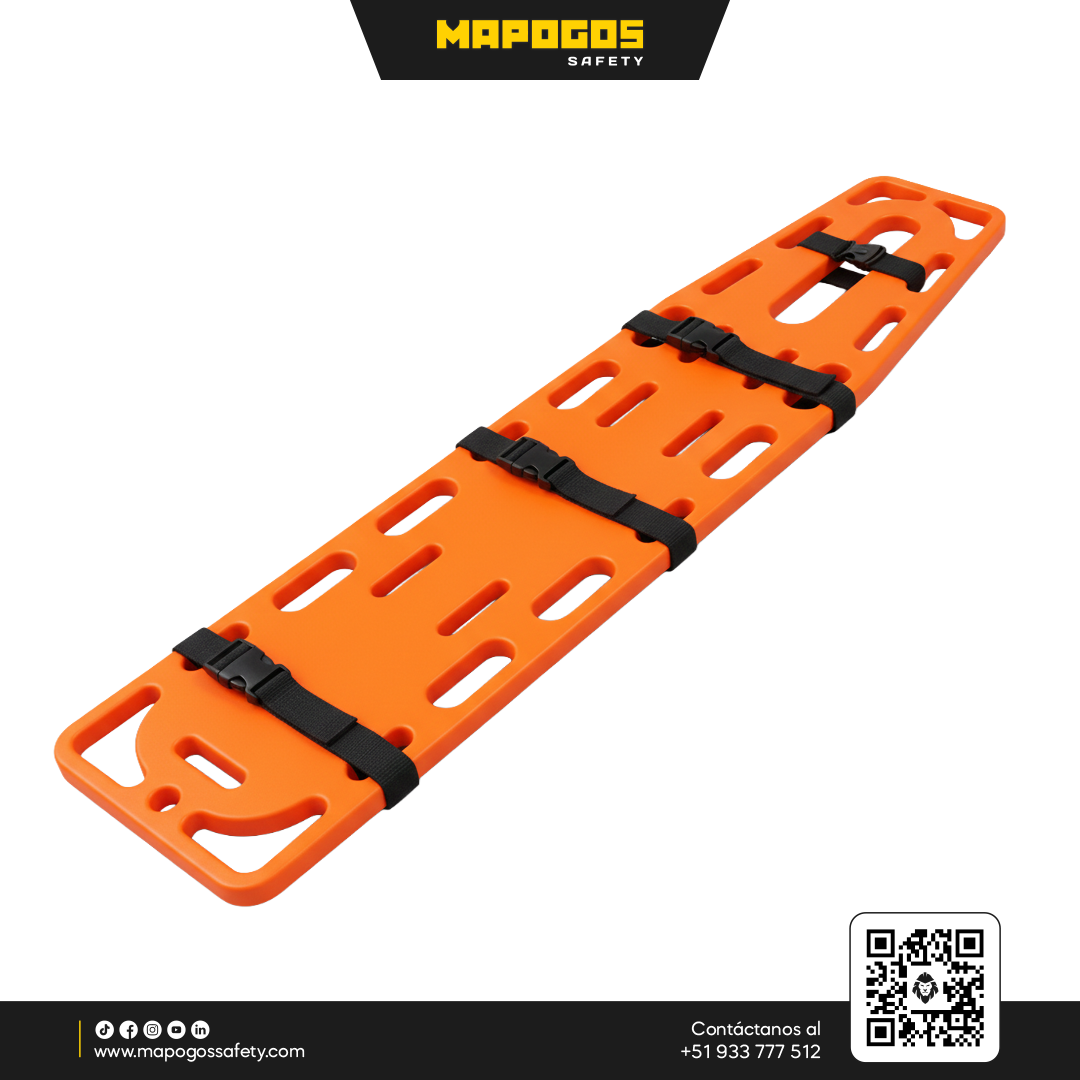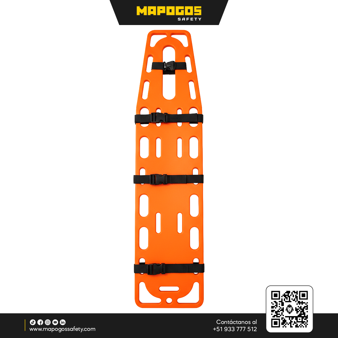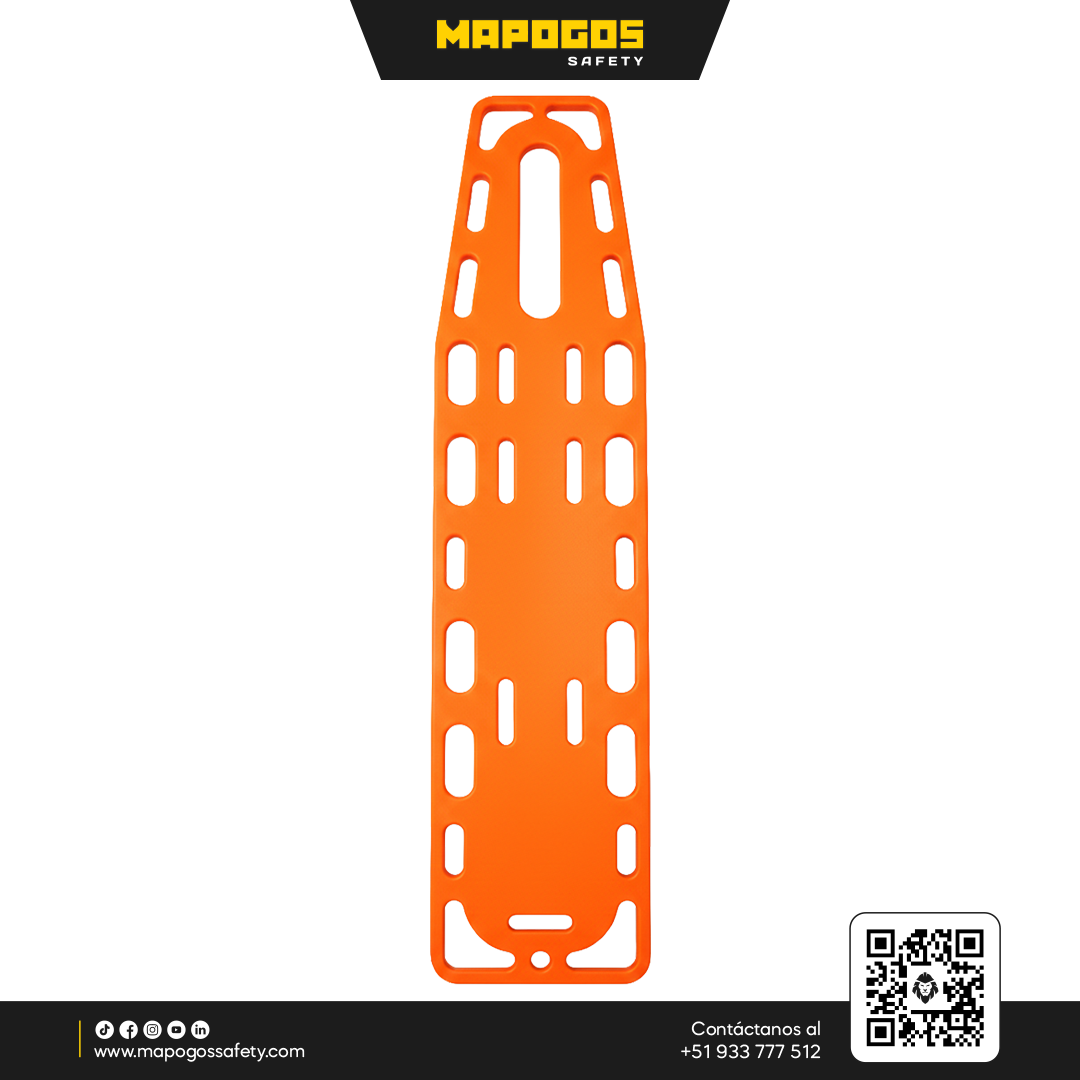 Descripción: Camilla rígida (férula espinal) de polietileno de alta densidad para el traslado de lesionados. Protege el área cervical, la columna y en generla todo el cuerpo del paciente, con esto se evitan posibles traumas y se facilita el traslado manual.
