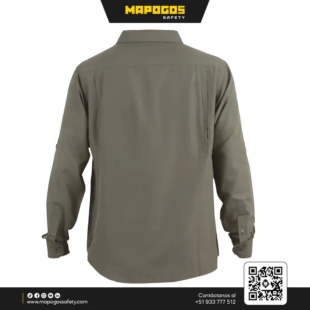 Versatilidad Operativa: Sistema Roll-Up con botón en las mangas que permite transformar la prenda de manga larga a corta según la necesidad térmica sin perder formalidad.
