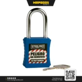 Candado Steelpro X10 Long, una solución de alta visibilidad y durabilidad diseñada para bloqueos industriales y eléctricos exigentes.