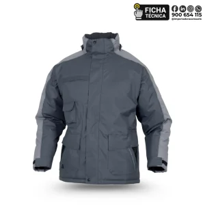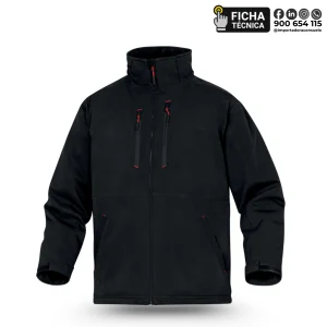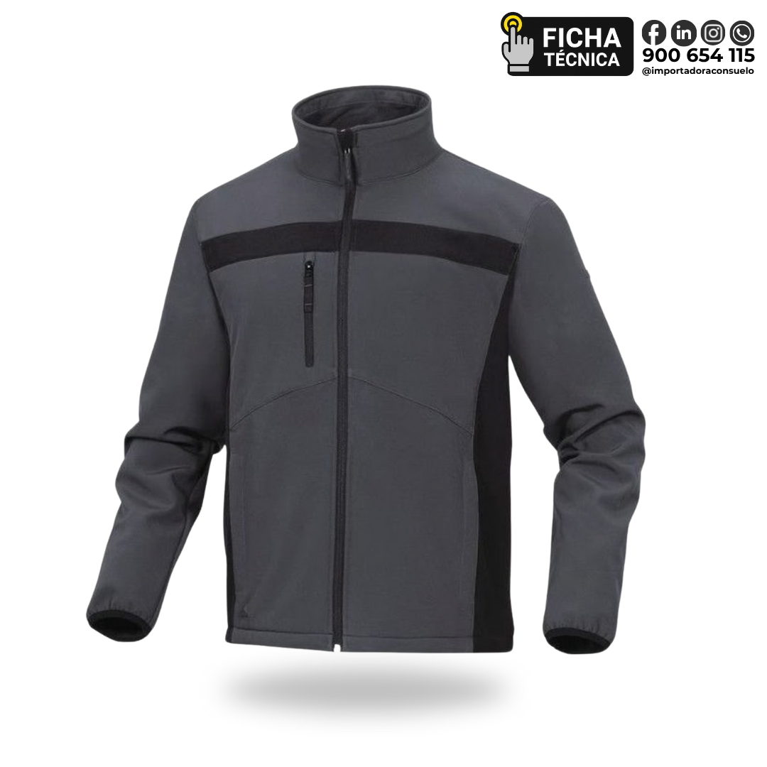 Chaqueta softshell azul versátil, cortavientos e hidrófuga, diseñada para ofrecer protección ligera y comodidad térmica en el trabajo al aire libre.