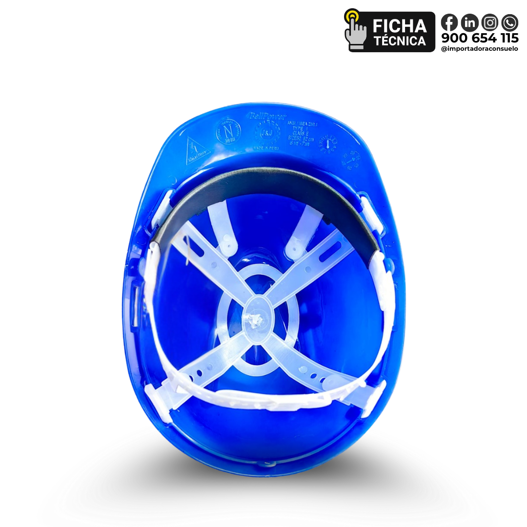 El casco Bellpower con suspensión de 4 puntos está diseñado para ofrecer protección efectiva contra impactos verticales y penetraciones, cumpliendo con los estándares básicos de seguridad para actividades industriales, construcción y mantenimiento general.