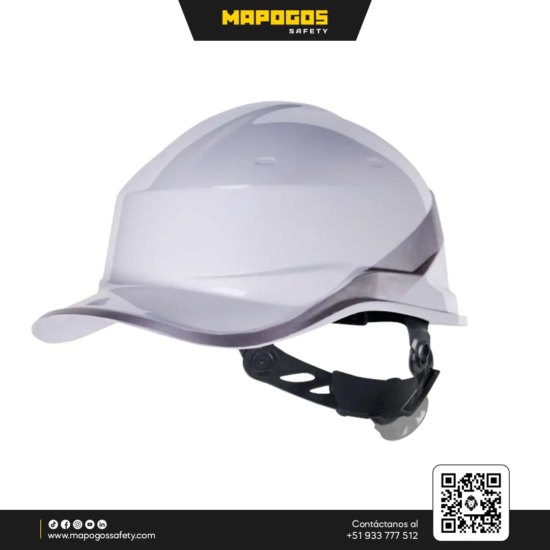 Casco de seguridad estilo baseball en ABS. Maximiza el campo de visión vertical y ofrece protección eléctrica para entornos industriales exigentes.