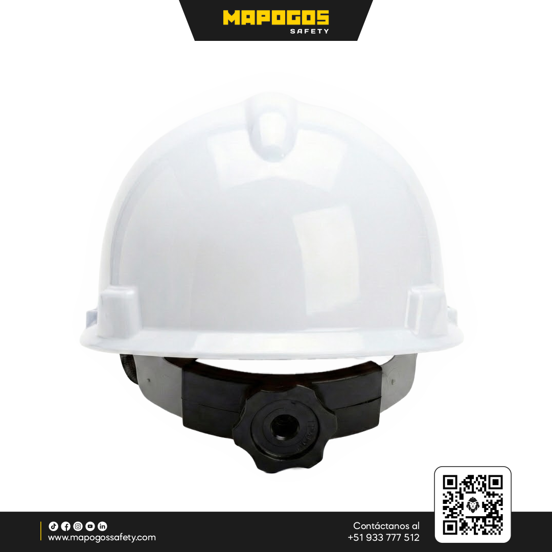 Su sistema de suspensión de 4 puntos con cintas textiles ayuda a distribuir la energía del impacto, ofreciendo mayor estabilidad y confort durante la jornada laboral. El color blanco suele utilizarse para supervisores, ingenieros o personal técnico, facilitando la identificación por jerarquía.