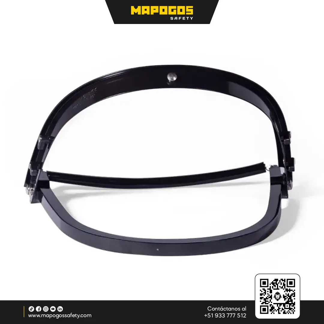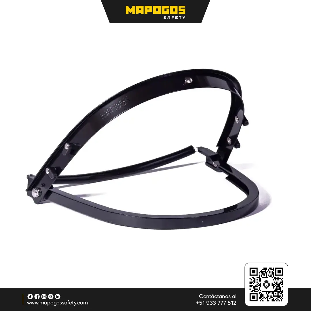 Adaptador universal marca CLUTE sirve como soporte para montar la pantalla facial a cualquier casco de seguridad estándar. Brinda al usuario protección facial y craneana simultánea.