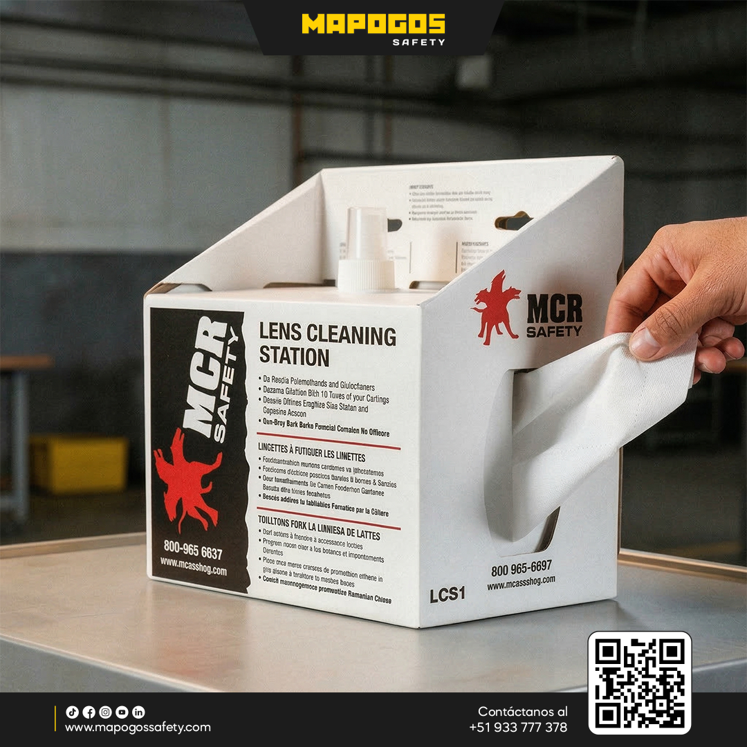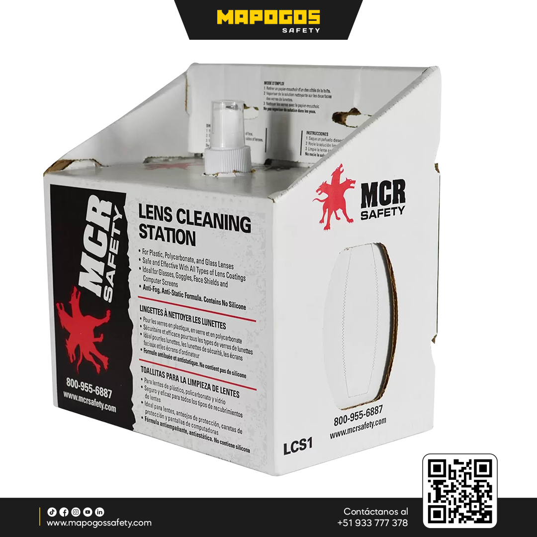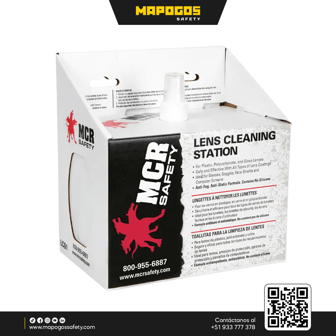 La estación de limpieza para anteojos MCR Safety es un sistema integral diseñado para el mantenimiento profesional de equipos de protección visual en entornos industriales. Este kit práctico incluye una botella de solución limpiadora de 8 oz (236 ml) y un dispensador con 600 pañuelos desechables sin pelusa, ideales para eliminar grasa y residuos sin rayar las superficies. Es la solución perfecta para estaciones de EPP que buscan prolongar la vida útil de sus lentes certificados.