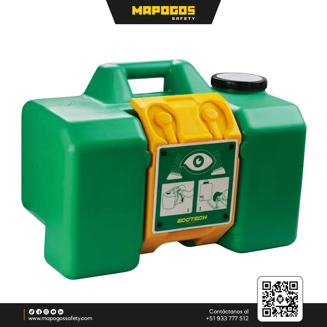Equipo de respuesta inmediata diseñado para el lavado ocular en zonas industriales críticas, optimizando la seguridad del personal en locaciones remotas sin conexión hídrica.