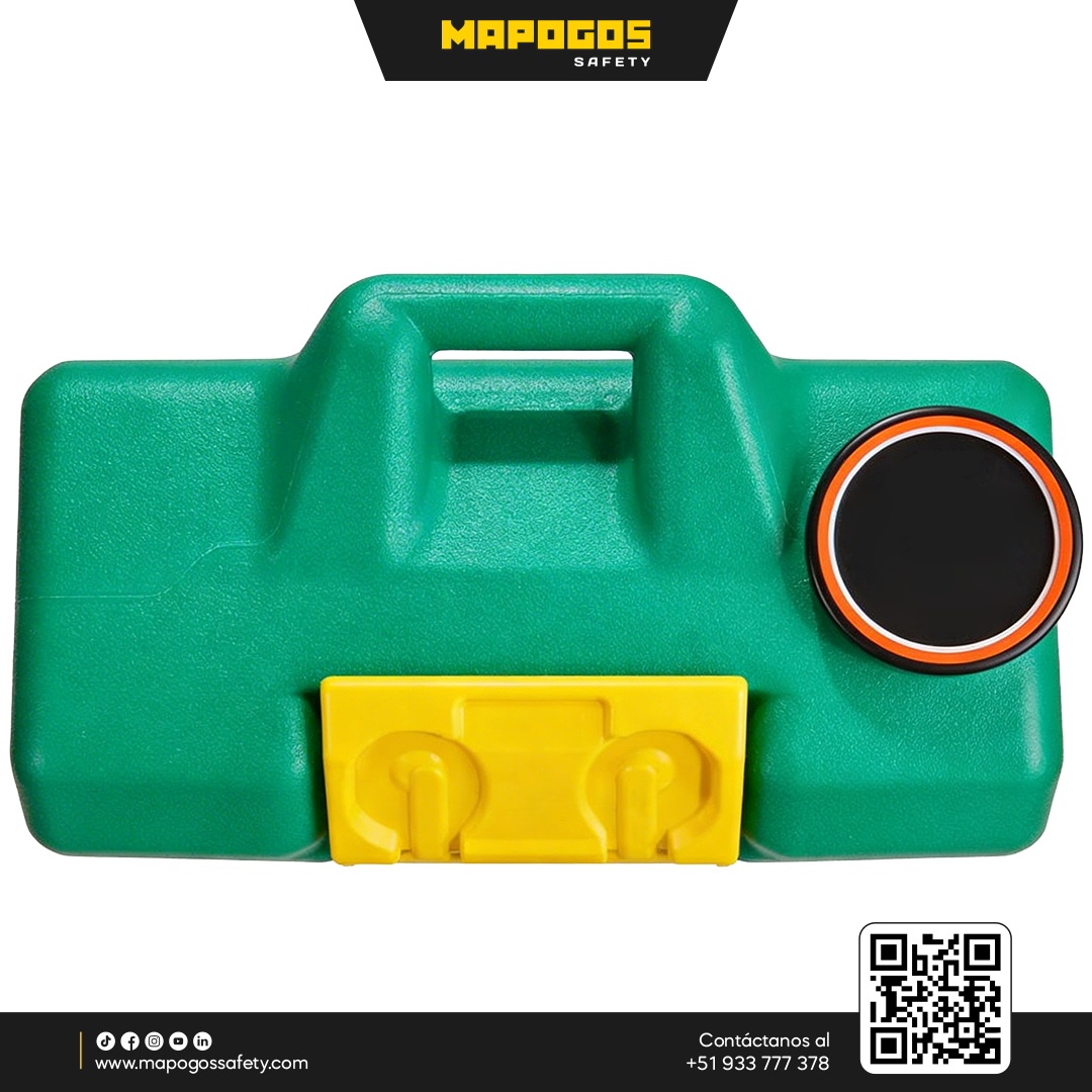 Solución de respuesta inmediata ante la exposición ocular a sustancias químicas peligrosas en entornos industriales con acceso limitado a agua. Fabricada en plástico ABS de alta resistencia, garantiza un flujo constante de agua potable para una descontaminación eficaz.