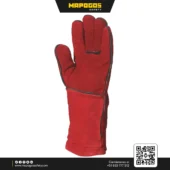 Guante de soldador profesional reforzado con Kevlar, diseñado para máxima durabilidad y protección térmica extendida en antebrazo para industria pesada.