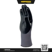 Guante mecánico de poliamida con doble baño de nitrilo. Diseñado específicamente para garantizar agarre y protección en trabajos con aceites, grasas y entornos acuosos.