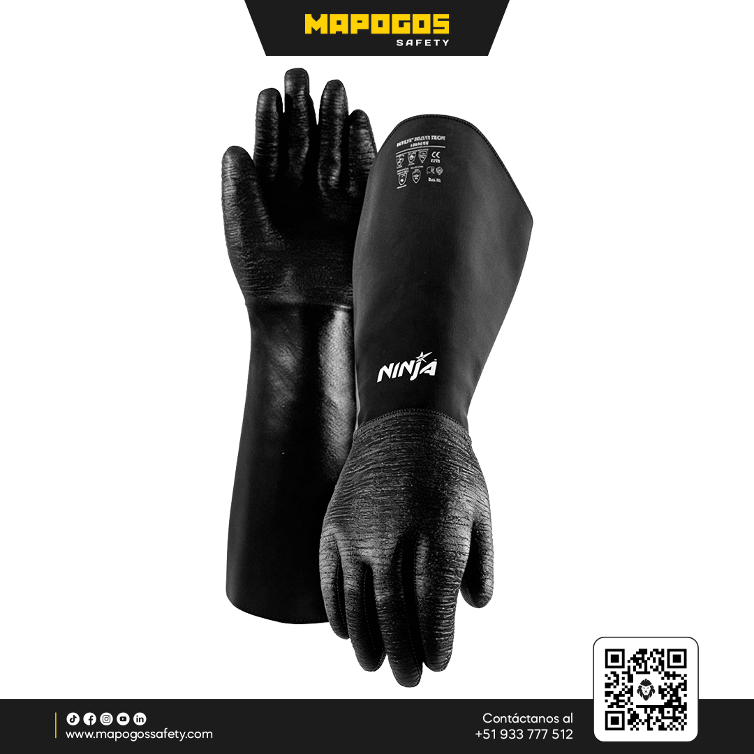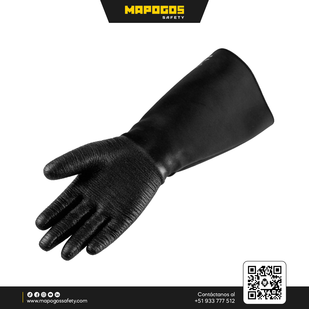 Manoplas de protección industrial diseñadas para entornos exigentes que implican exposición a productos químicos, temperaturas extremas y abrasión. Están construidos con forro de algodón tipo interlock, espuma de 6 mm para aislamiento térmico, y un recubrimiento completo de neopreno negro, lo cual permite combinación de confort, protección química, térmica y mecánica.
