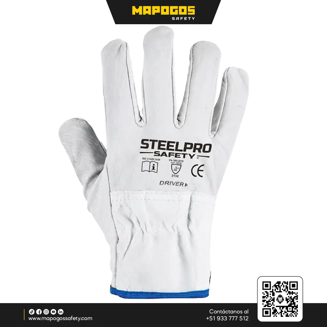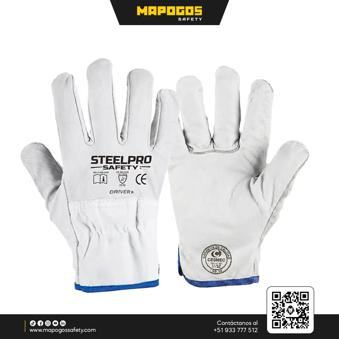 Los guantes Driver de Steelpro están fabricados en cuero flor vacuno de alta resistencia, ofreciendo una excelente protección mecánica sin perder flexibilidad ni confort. Su diseño tipo chofer incluye palma de cuero natural amarillo y refuerzos en gris, lo que mejora su visibilidad, resistencia al desgaste y apariencia profesional.
