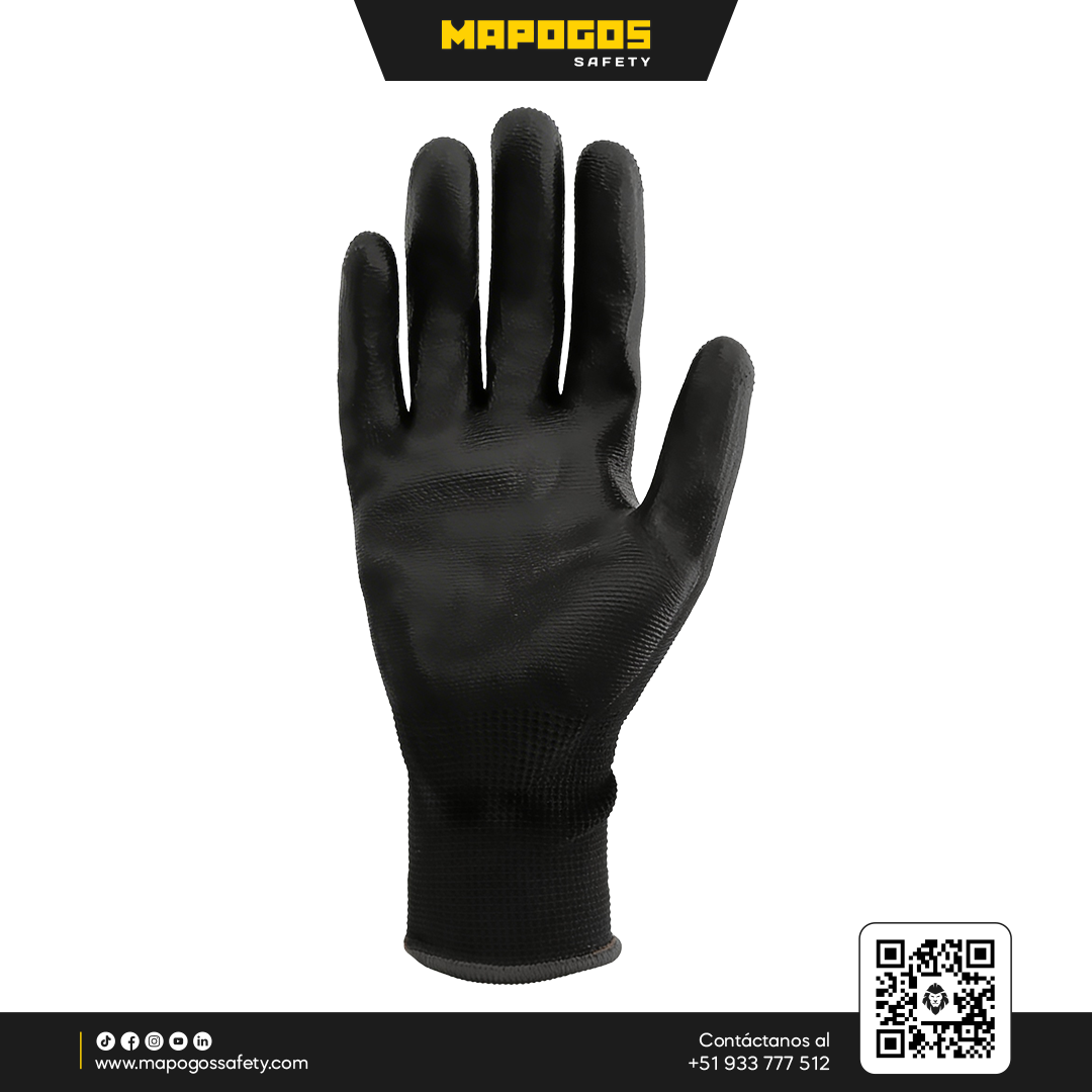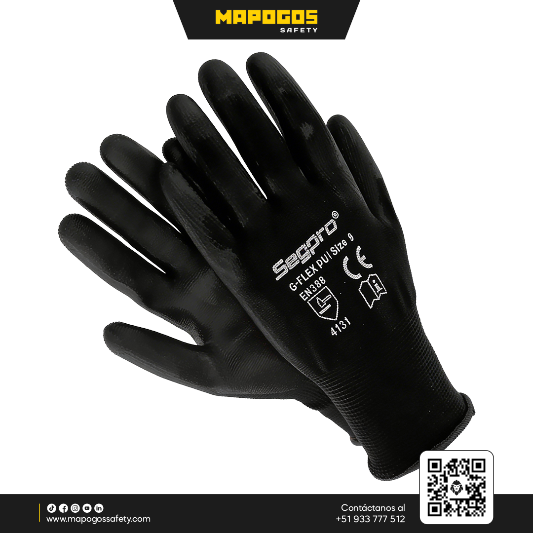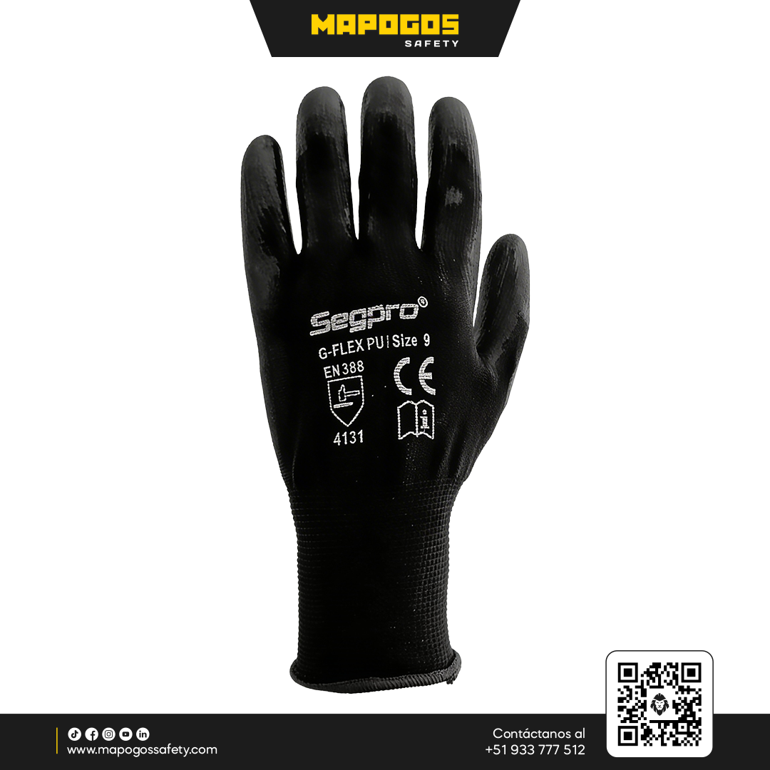 Guante G-Flex PU fabricado en poliéster y recubierto con poliuretano (PU) en la palma. Es un guante ligero y ergonómico, diseñado para proveer destreza y reducir la fatiga en trabajos industriales y de construcción
