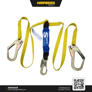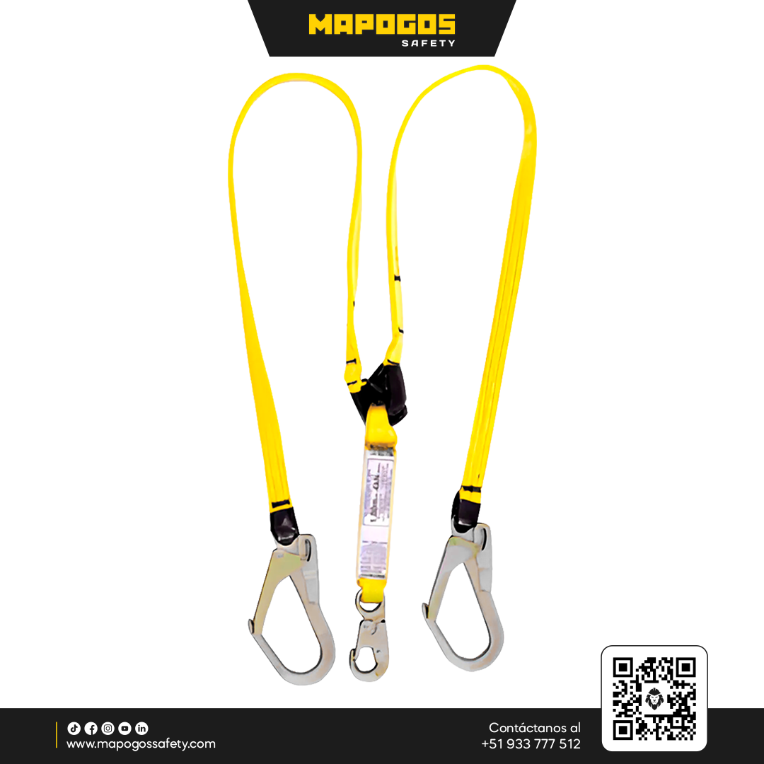 Nuestra línea de vida doble cuenta con tres ganchos metálicos: uno de 3/4 para ser colocado en el anillo dorsal del arnés y dos en 2 l/4 para conectarse, amortiguador de impacto para reducir la fuerza de caída y correas ajustables para un mayor confort.