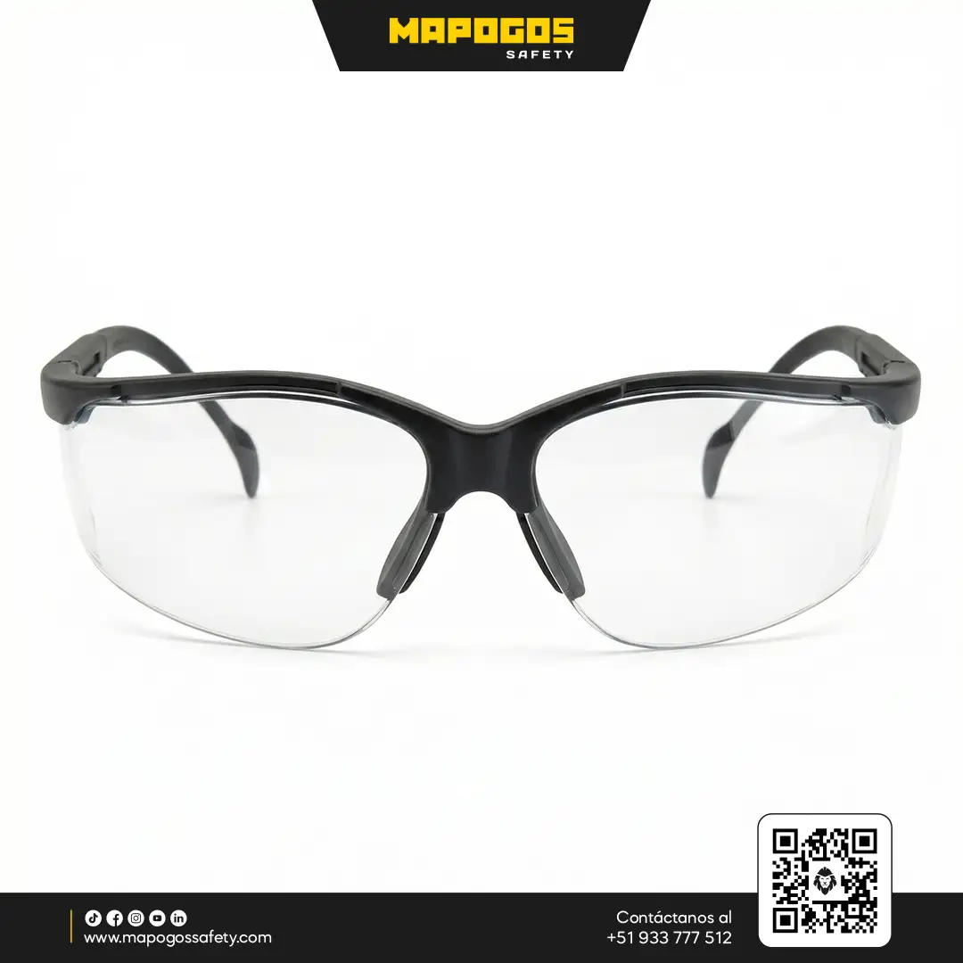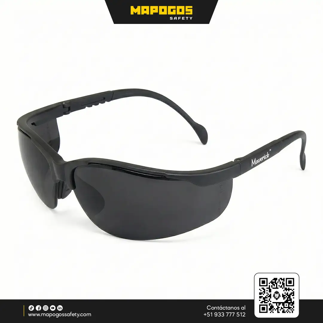Gafas de seguridad industrial MSA Maverick con lente envolvente de policarbonato para máxima protección contra impactos. Diseño ligero y adaptable que combina seguridad normativa con confort ergonómico.