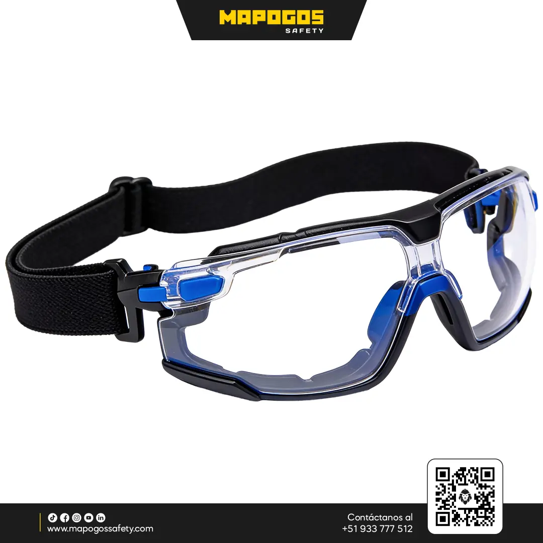 Gafas de seguridad premium con tecnología anti-empañante Scotchgard™. Visión nítida, protección UV y adaptabilidad total para entornos exigentes.