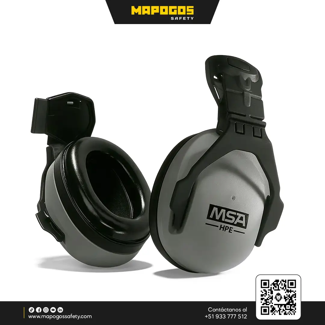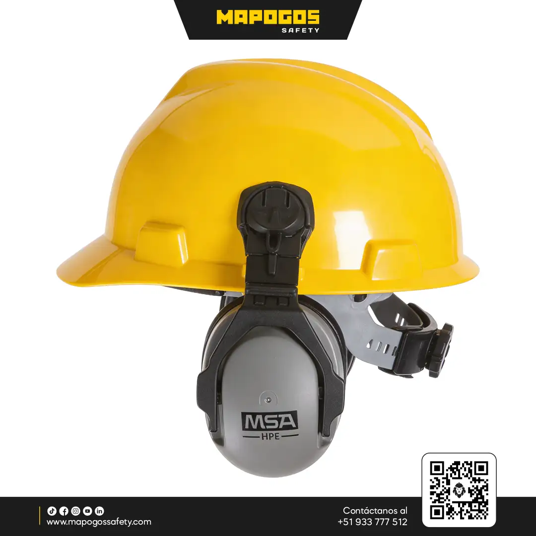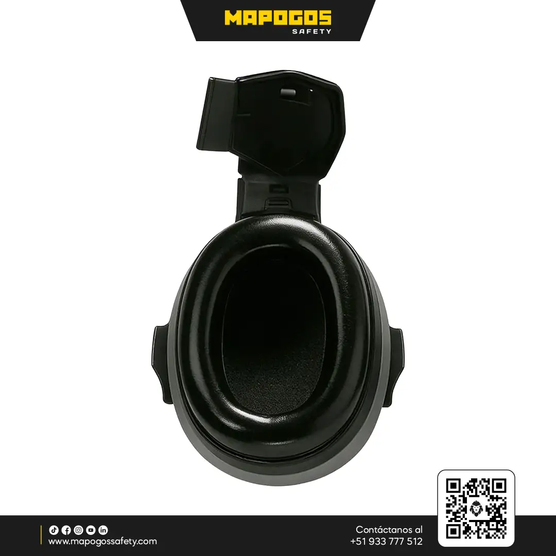 Protección auditiva profesional de alta atenuación (NRR 27 dB) diseñada para montaje en cascos industriales, ofreciendo ergonomía avanzada y un sello acústico hermético.