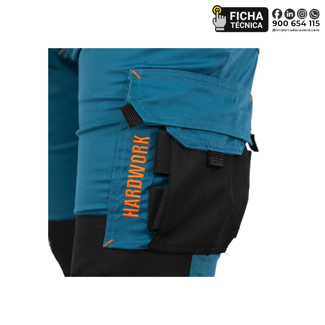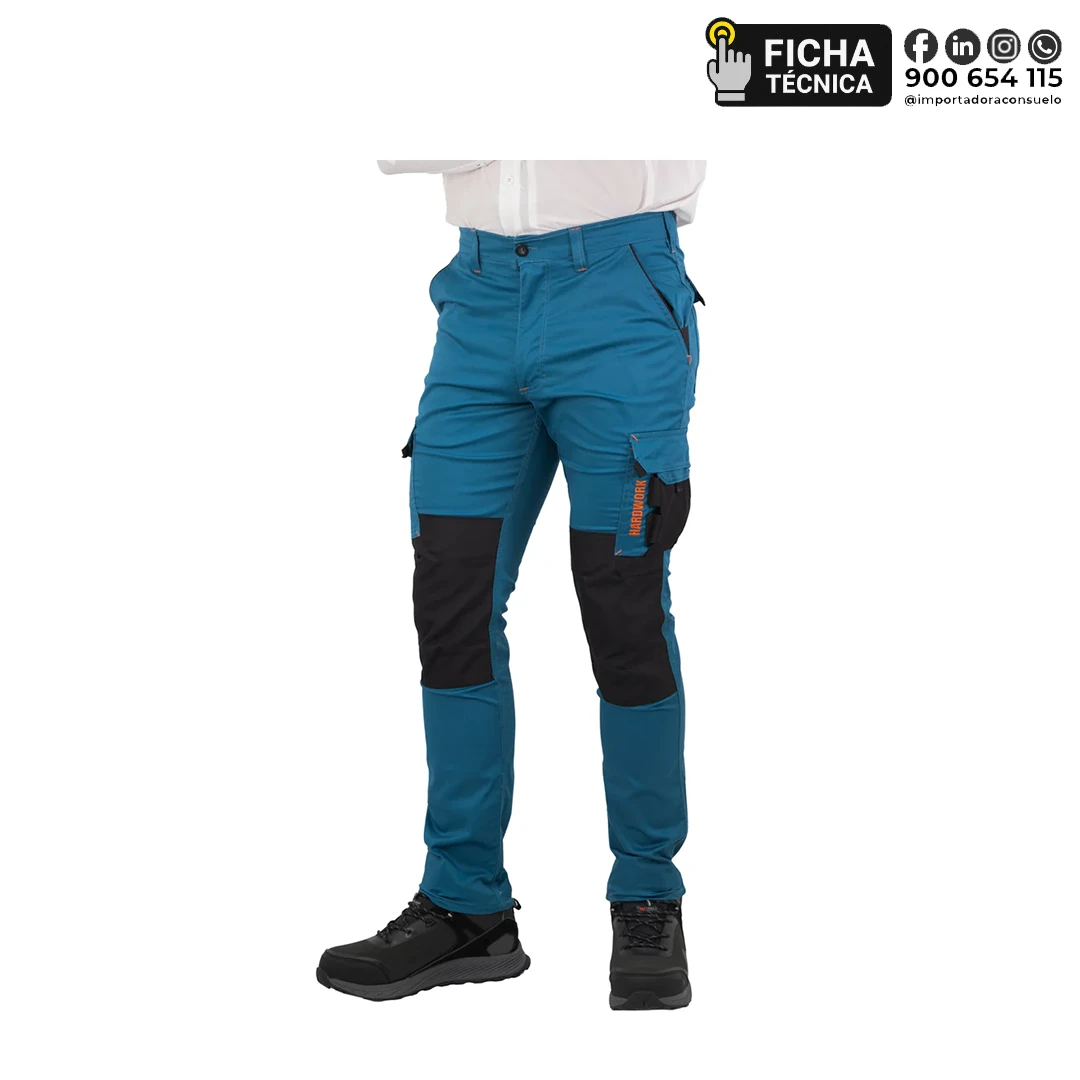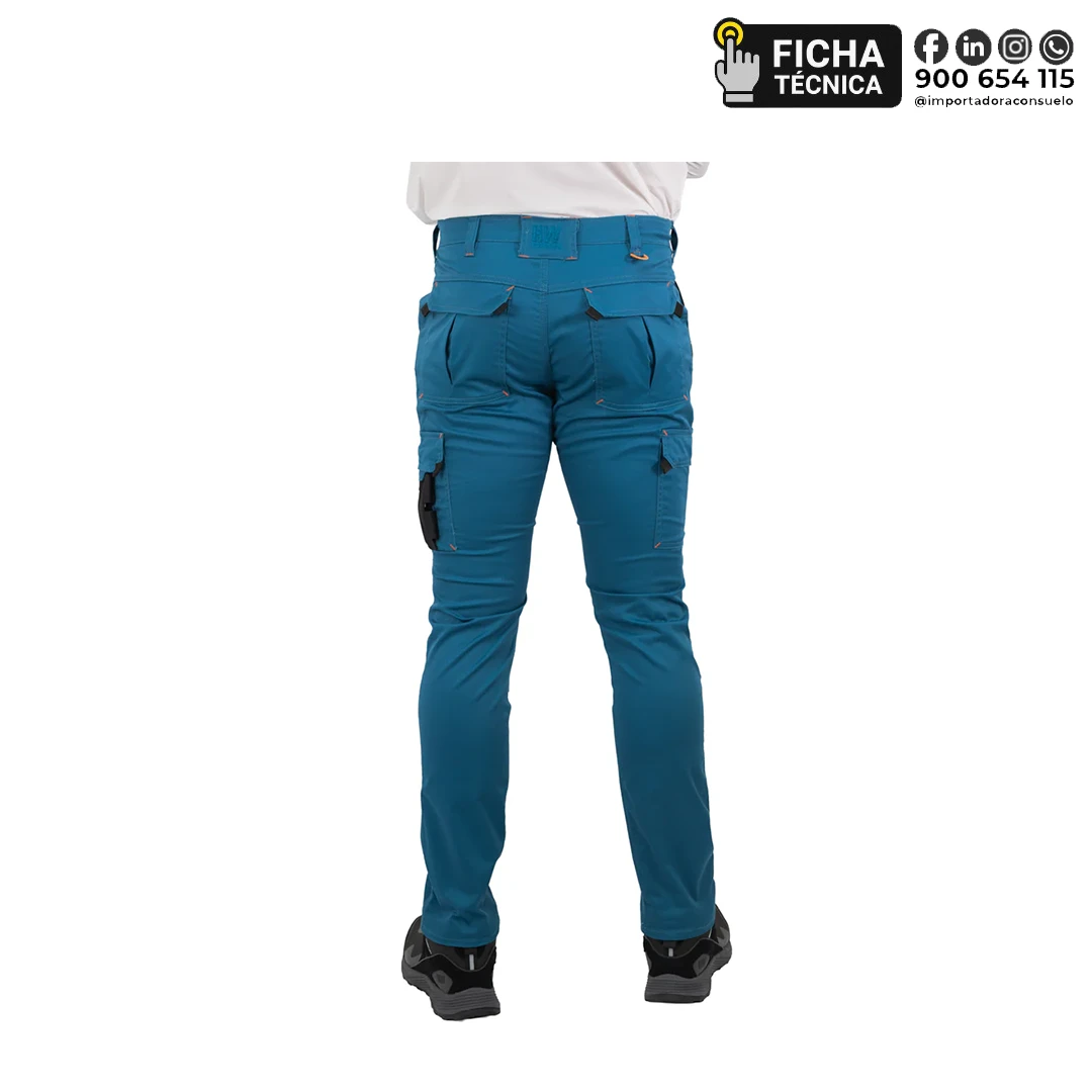 Pantalón de trabajo tipo cargo confeccionado en tela flexible con mezcla de spandex, ideal para brindar comodidad, resistencia y libertad de movimiento durante jornadas laborales exigentes. Su color petróleo y diseño moderno lo convierten en una prenda versátil, funcional y de gran estilo.