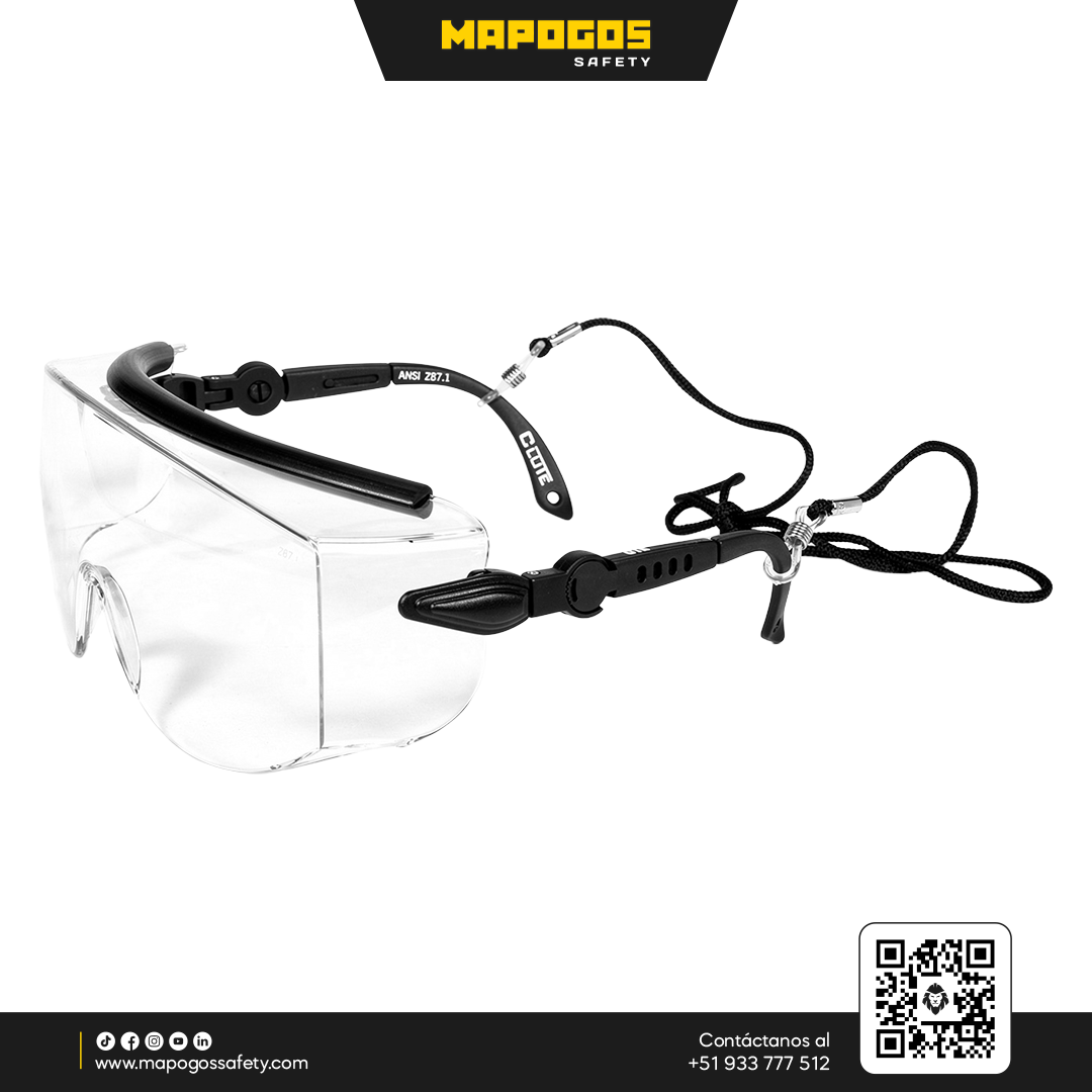Los anteojos de seguridad OTG de CLUTE, se han diseñado para proveer el nivel de protección ocular requerido contra altos impactos, para aquellos usuarios que además de lentes de seguridad, requieran el uso de lentes de prescripción. Ofrecen una cobertura y un campo visual excelente.