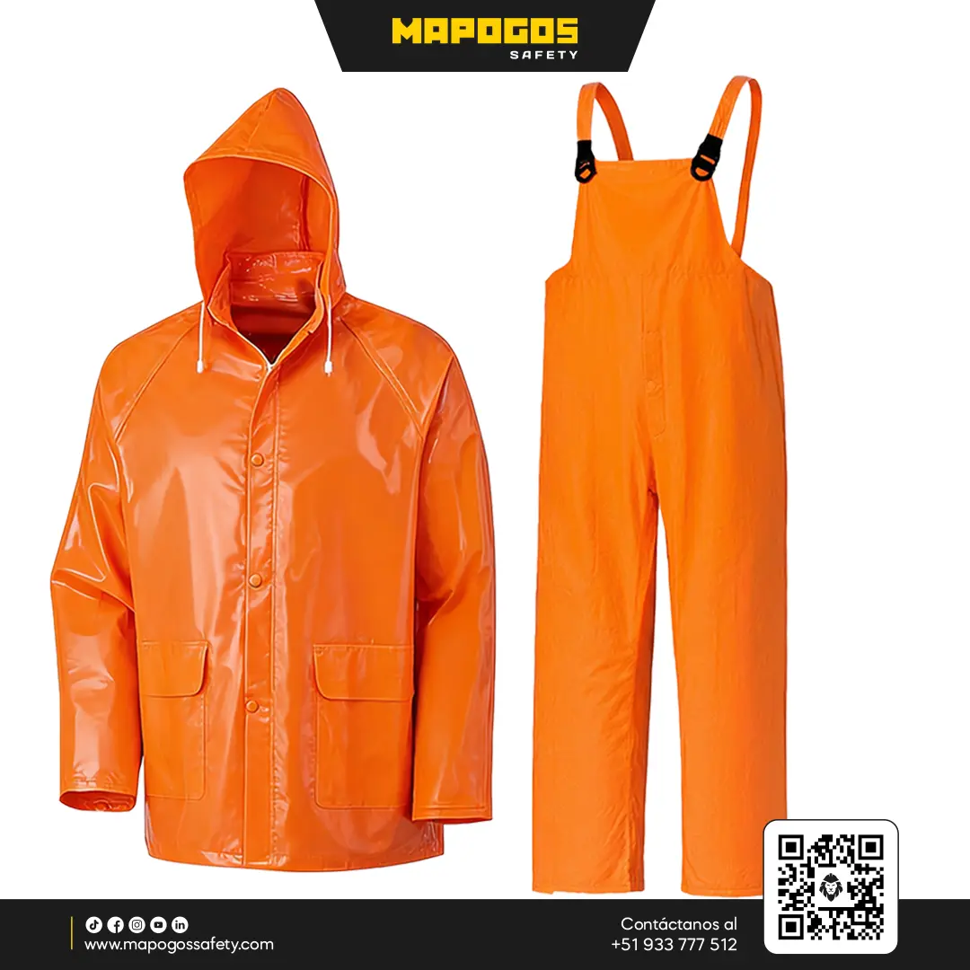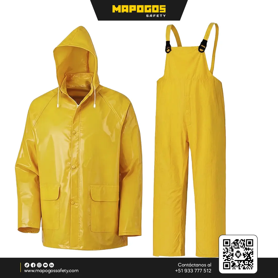 Fabricado con una base de poliéster virgen recubierta por ambas caras con láminas de PVC de 0.32 mm, este conjunto de chaqueta y jardinera (overol) destaca por sus costuras selladas mediante electrofrecuencia. Su diseño integra un sistema de ventilación estratégica y un espesor optimizado para resistir el desgarro sin comprometer la movilidad del usuario.