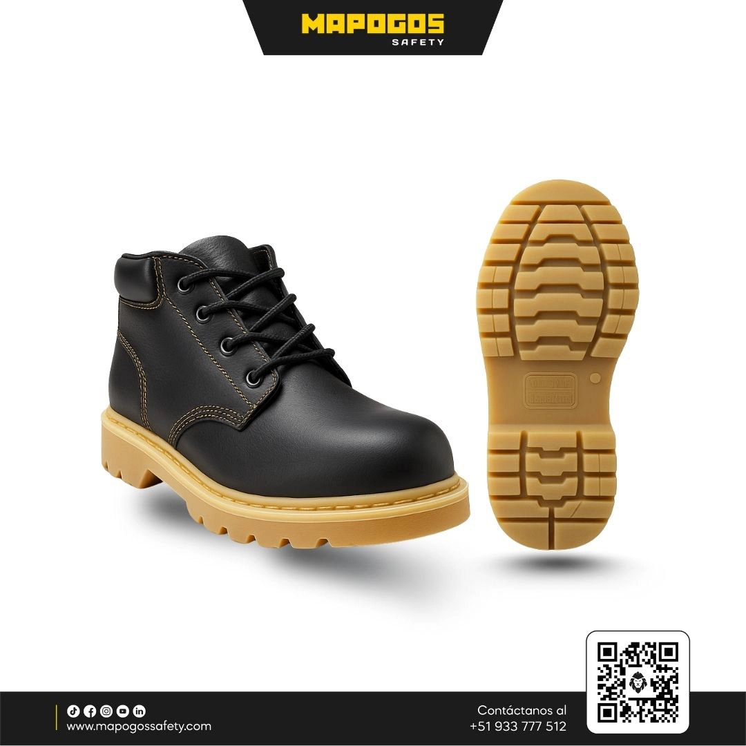 Zapato de cuero con puntera y suela de baquelita dieléctrica, resistente hasta 20 kV. Ideal para trabajos eléctricos, construcción y minería. Seguridad, comodidad y resistencia en un calzado profesional.