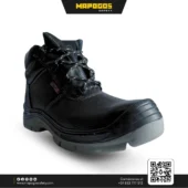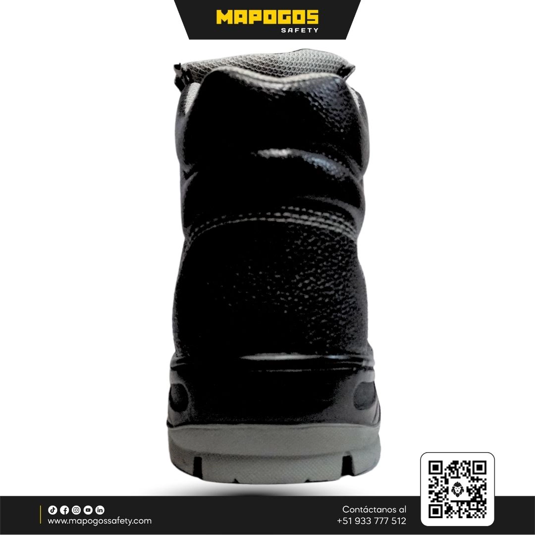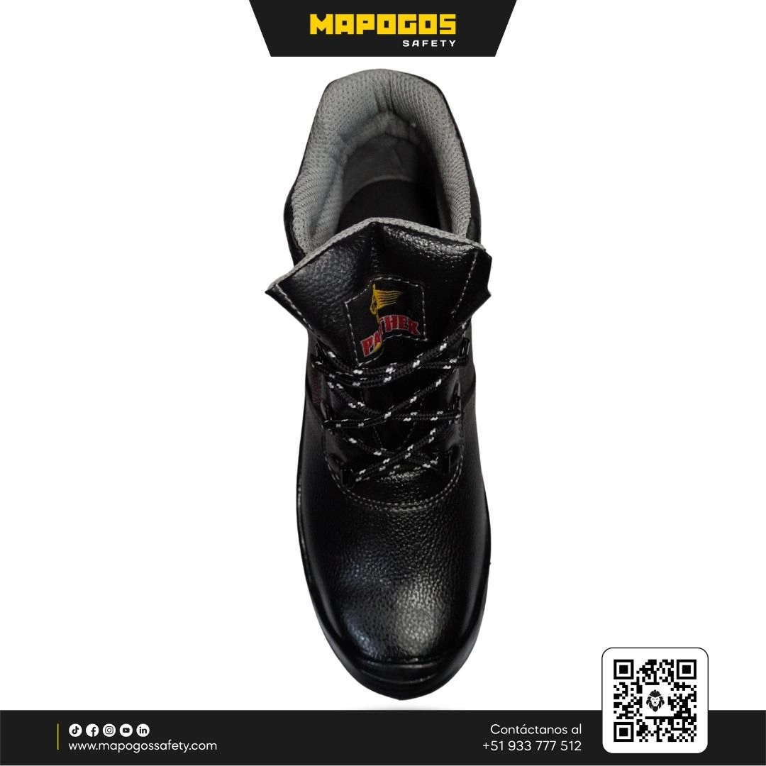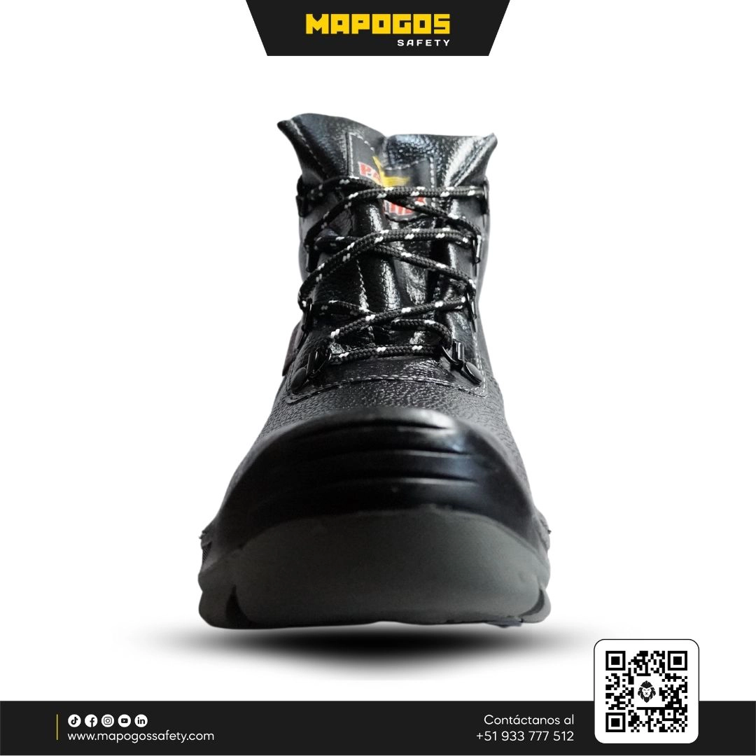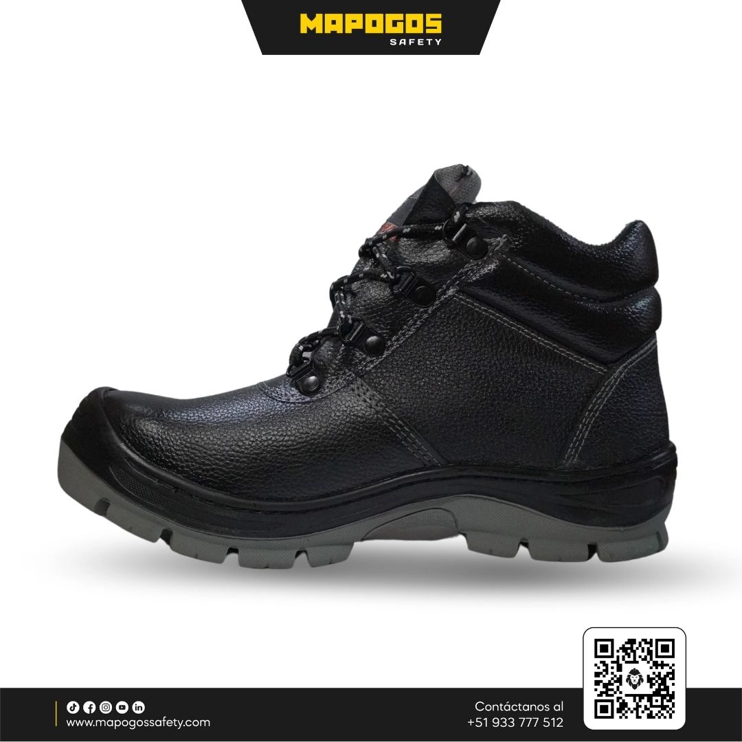 Zapato de seguridad nacional fabricado en cuero box de 2.0 mm con planta de caucho antideslizante, puntera de acero (200 J), forro interior transpirable y plantilla EVA antimicótica. Ligero, resistente y cómodo, ideal para minería, construcción, logística y servicios.